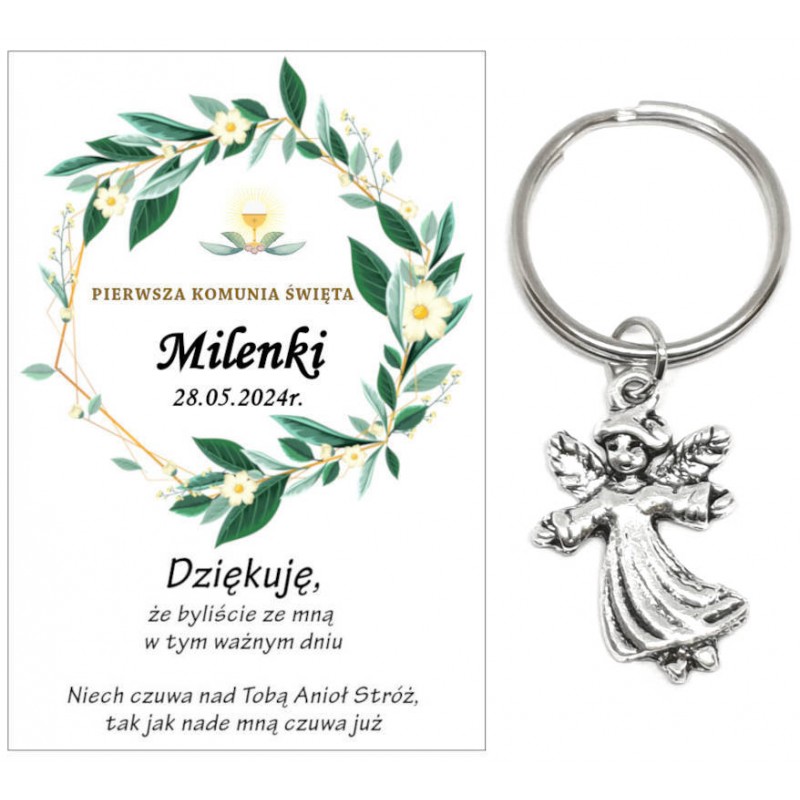 Podziękowanie dla gości brelok ANIOŁEK KOMUNIA PERSONALIZACJA PAMIĄTKA A30