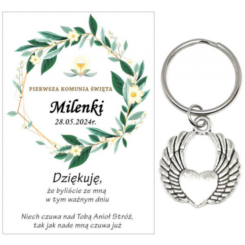 Podziękowanie dla gości brelok SKRZYDŁA KOMUNIA PERSONALIZACJA PAMIĄTKA A33